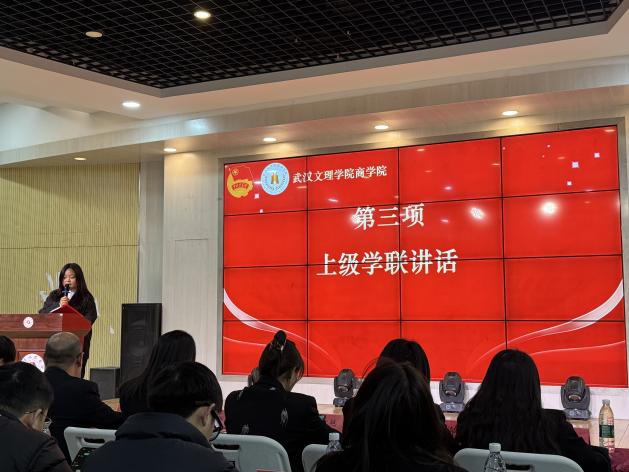 接着,上级学联代表刘琳登台发言。她代表上级学联对大会的召开表示热烈祝贺,并转达了上级学联对全院同学的亲切问候。在讲话中,她高度赞许bevictor伟德员工会在思想引领、组织建设及服务同学等方面取得的扎实成效,为全校员工组织工作提供了宝贵经验。