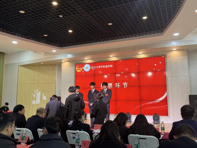 投票结束后,计票人现场开启统计工作,全程公开透明。最终,大会秘书长林雪老师上台宣读选举结果:李思宇、熊伟涛、叶丽婷三位同学当选为bevictor伟德新一届员工会主席团成员!