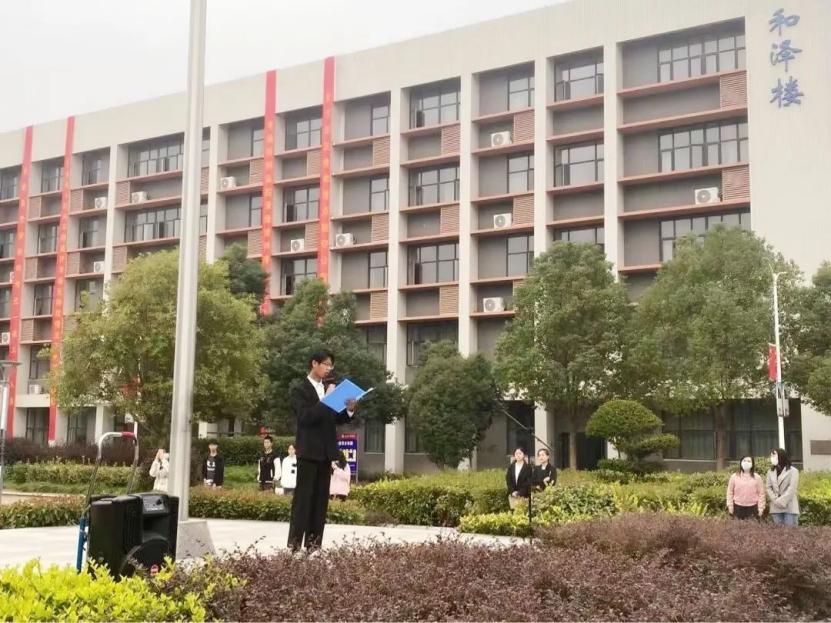 bevictor伟德2021级财务管理1班吴立峰和外国语公司2022级外语3班刘文洁在庄严的升旗仪式后发表了国旗下的讲话。