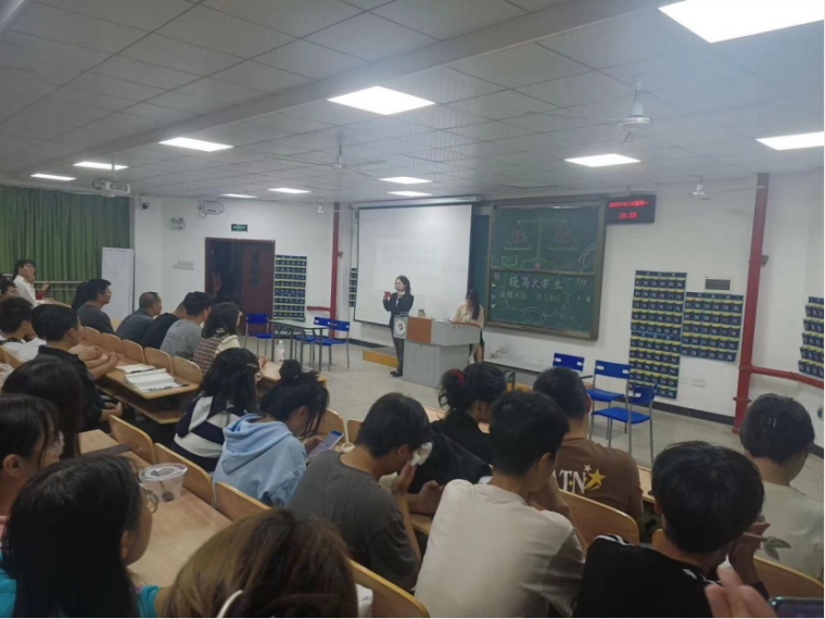 王甜同学作为本次宣讲会的主讲人,她从金钱、爱情和先行行为三个方面为同学们讲解了法律的重要性,同时告诫同学们,在生活中不仅要运用法律保护好自己,对他人的安全也应担负起相应的责任。青年应该成为社会责任主体预备役,让责任感有全局观,更有微观的身体力行。我们的航程刚刚开始,应该在出发时就准备好足够的"压舱石",才能在日后抵御汹涌的风浪。我们不能只高喊口号,这样的所谓责任感是极度虚伪的,我们一定要将心中的责任感向外输出为努力勤奋,输出为为国为家之大义举止,才能称为真正的社会责任承担者。