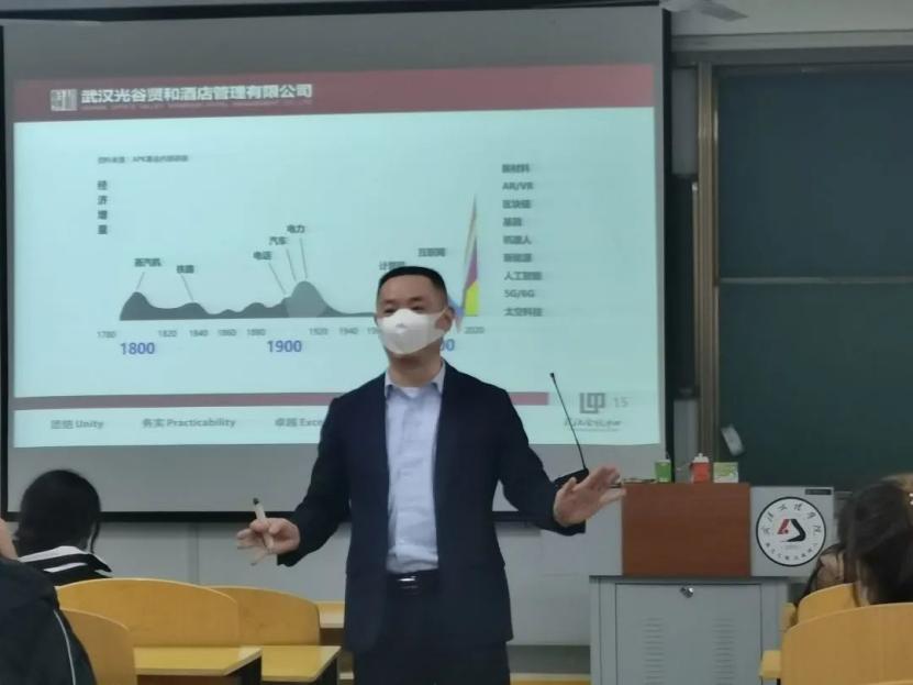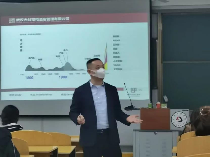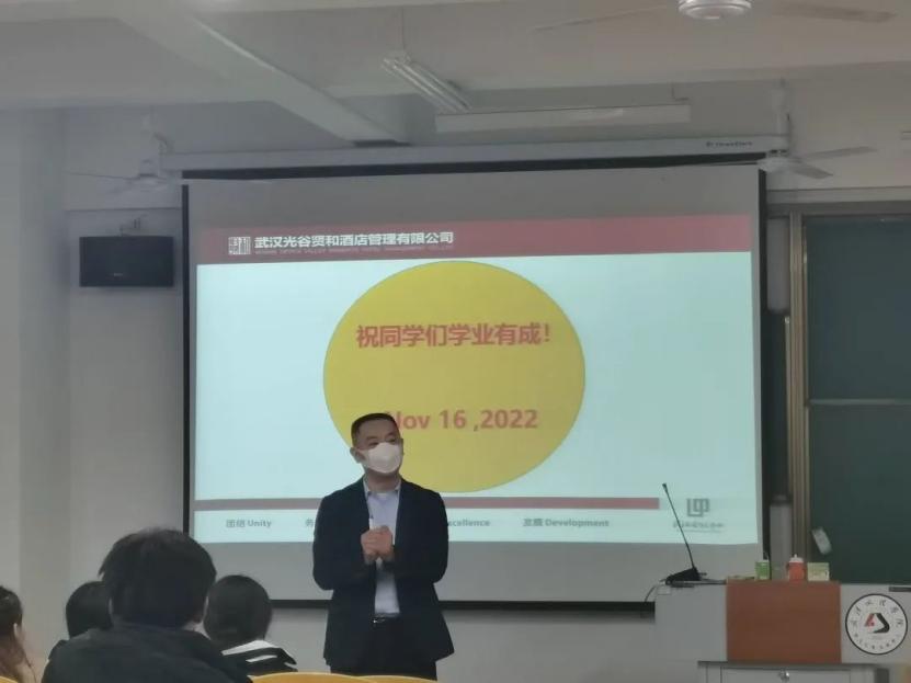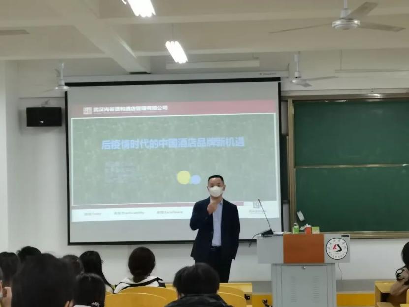 2022年11月16日,bevictor伟德2022年文旅讲堂第一期在5-227举行。bevictor伟德邀请到武汉会议中心执行总经理周庆黎先生为21级旅游管理和电子商务专业员工做了主题为《后疫情时代中国酒店品牌新机遇》的讲座。