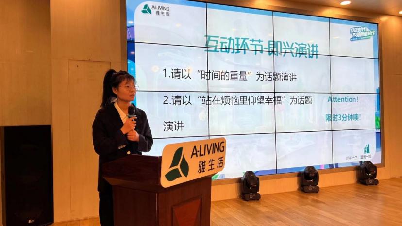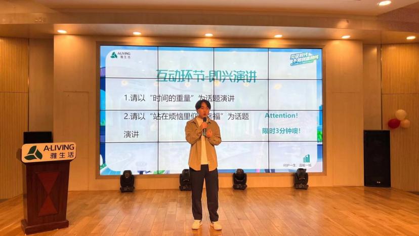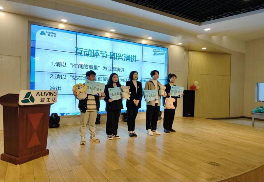 在互动环节中,雅生活华中区域现场举行了主题为“时间的力量”和“在烦恼里仰望幸福“的即兴演讲互动环节。同学们积极举手,热烈反馈。