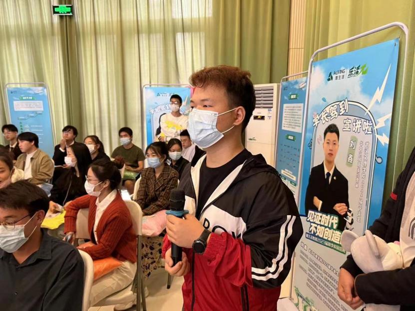 刘炫副经理、徐永辉书记、余芬主任为现场提问同学颁发企业纪念品