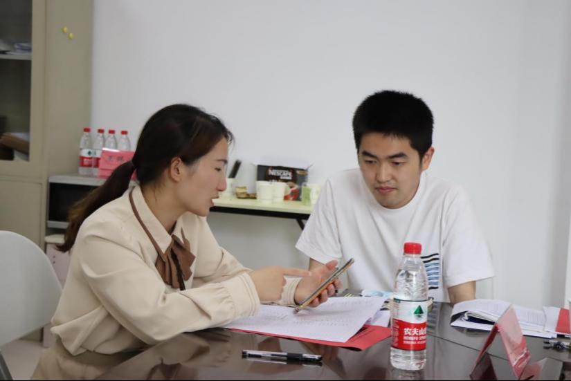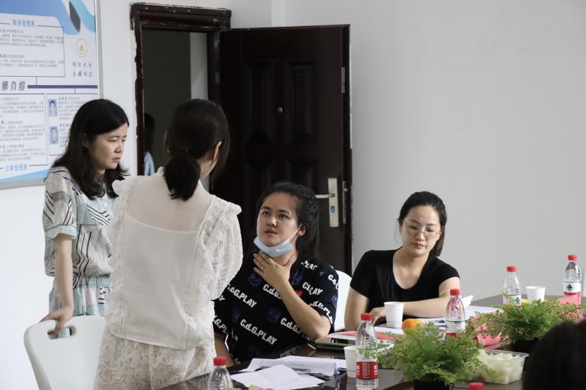 在3栋212分会场,刘炫副经理带工商管理系主任刘丹、市场营销专业负责人王玮婧、教师吕敏 、程思宇与金勇、袁荃教授展开了分组讨论和交流。