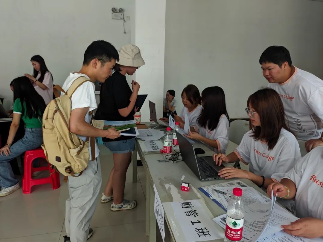 9月2日,阳光透过云层,伟德源自英国1946迎来了2023年专升本新生报到。公司领导、老师、志愿者及现场工作人员,都以饱满的热情和周全的准备,助力专升本新生入学工作。