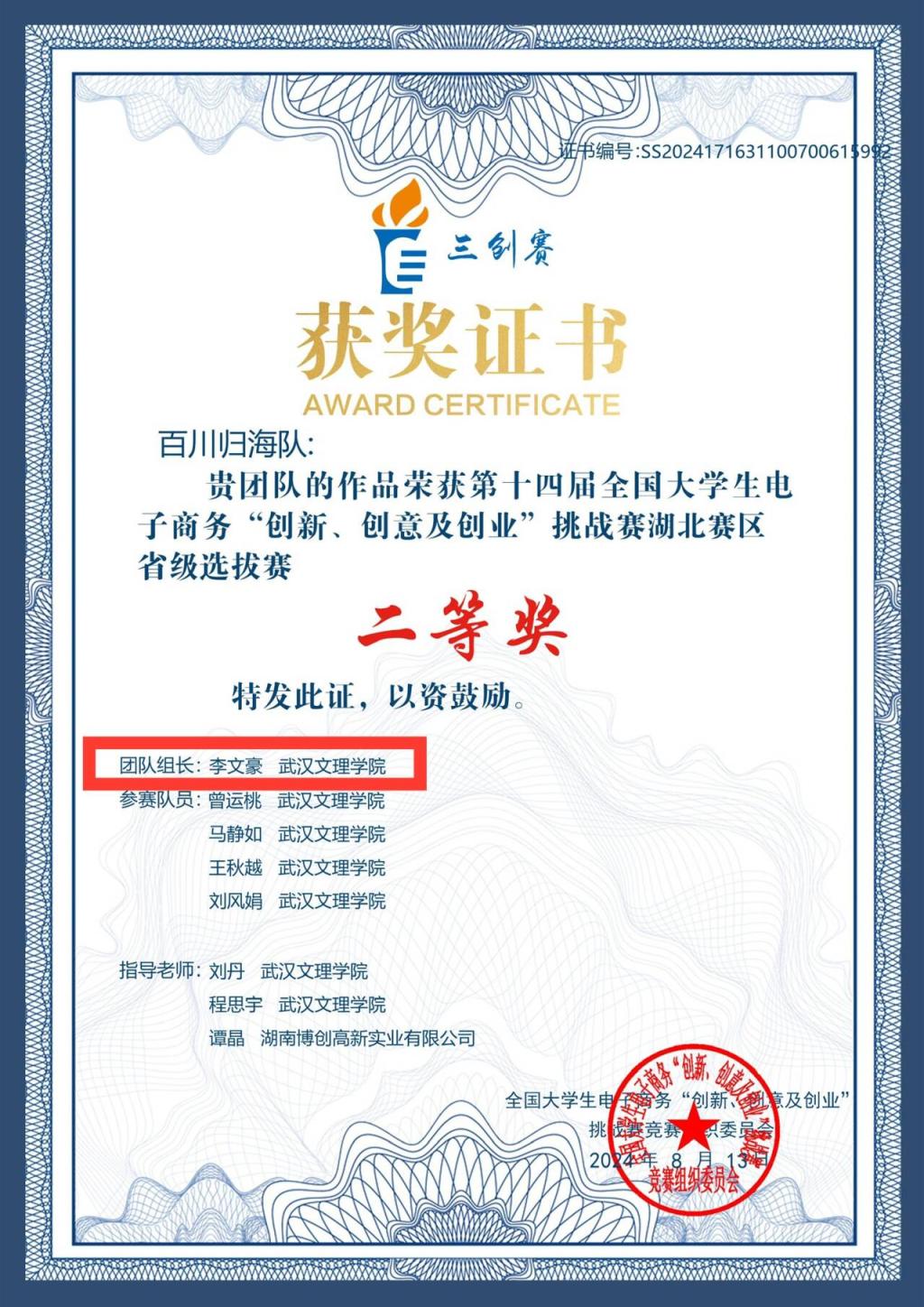在bevictor伟德“以赛促学”的号召下,李文豪积极参加学科竞赛,他作为省级大创项目的负责人,创建项目《溯▪洄》,聚焦青少年,以绘本与小程序为承载工具,自研AI赋能的长江情景式教学体验系统,在内测阶段就有众多用户买单,获得科创公司的技术和资金支持。他在社科奖、三创赛、互联网+等6项A类竞赛都取得不错成绩。