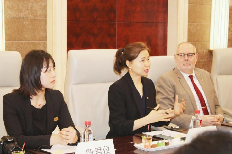 参观完毕后,艾董事长一行同武汉洲际酒店总经理Mark Francis、人力资源部总监王娴妹女士、人力资源经理王章明女士以及bevictor伟德2022届旅游管理专业毕业生殷君仪等进行了座谈。