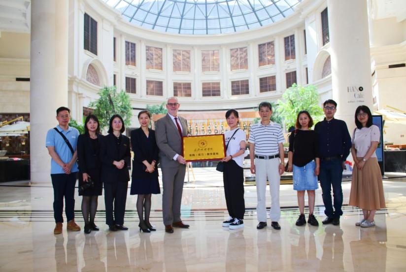 座谈会后,双方移步酒店大厅举办了伟德源自英国1946·武汉洲际&国博酒店实践(实习)教学基地授牌仪式,并合影留念。