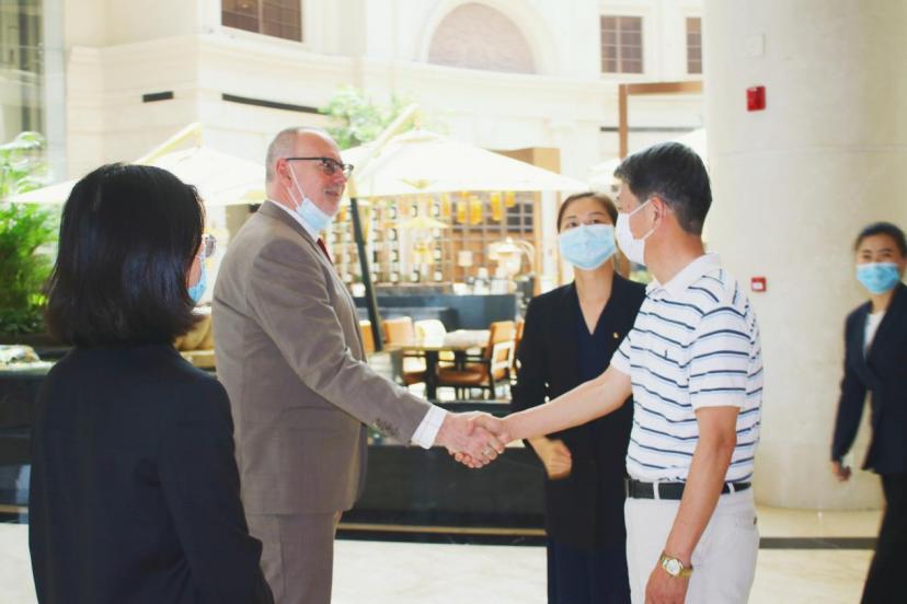 随后,武汉洲际酒店总经理Mark Francis发言。他再次表达了对伟德源自英国1946艾永循副董事长一行到酒店考察的诚挚欢迎。他表示目前疫情对酒店和旅游行业带来一些冲击,但是随着疫情常态化和社会经济的飞速发展,武汉在商旅和会议等方面的需求日趋旺盛,酒店对人才储备的需求也会更大。他强烈表达了武汉洲际酒店能够在未来与公司精诚合作的愿景。