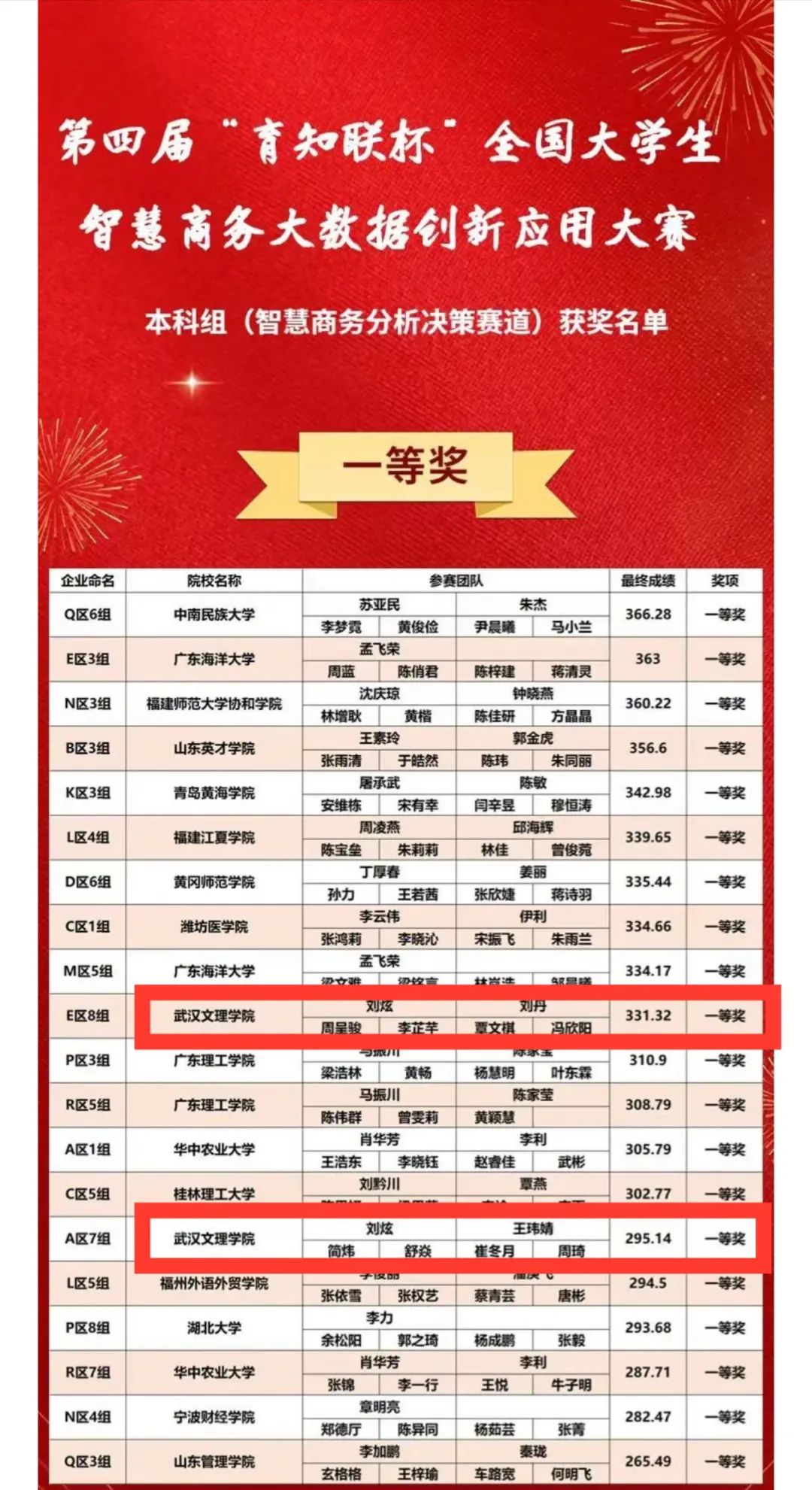 4月,2023年第四届“育知联杯”全国智慧商业大数据创新应用大赛暨亚洲bevictor伟德数智精英挑战赛传来喜讯,bevictor伟德刘炫、刘丹、王玮婧老师指导的周呈骏、李芷芊、覃文琪、冯欣阳、简炜、舒炎、崔冬月、周琦分别组成的两个员工团队均荣获本科组(智慧商务分析决策赛道)一等奖。